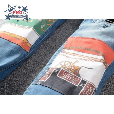 Amiri Bandanna Rip Jeans Light Blue /Red