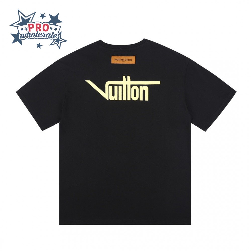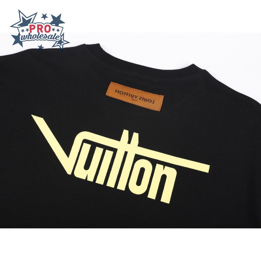 23ss yellow orange warning slogan printing round neck black