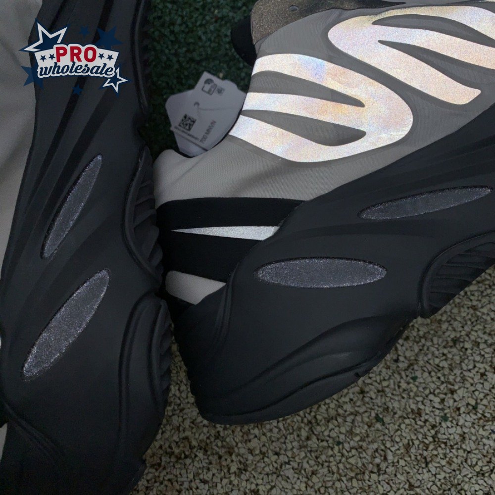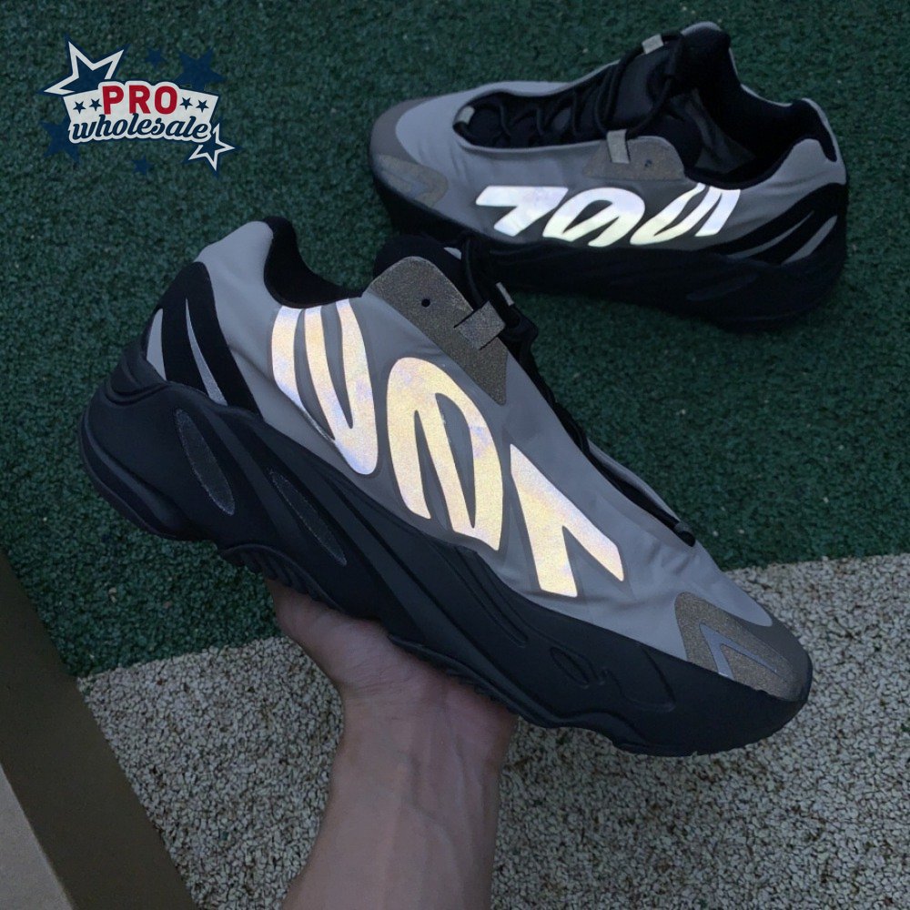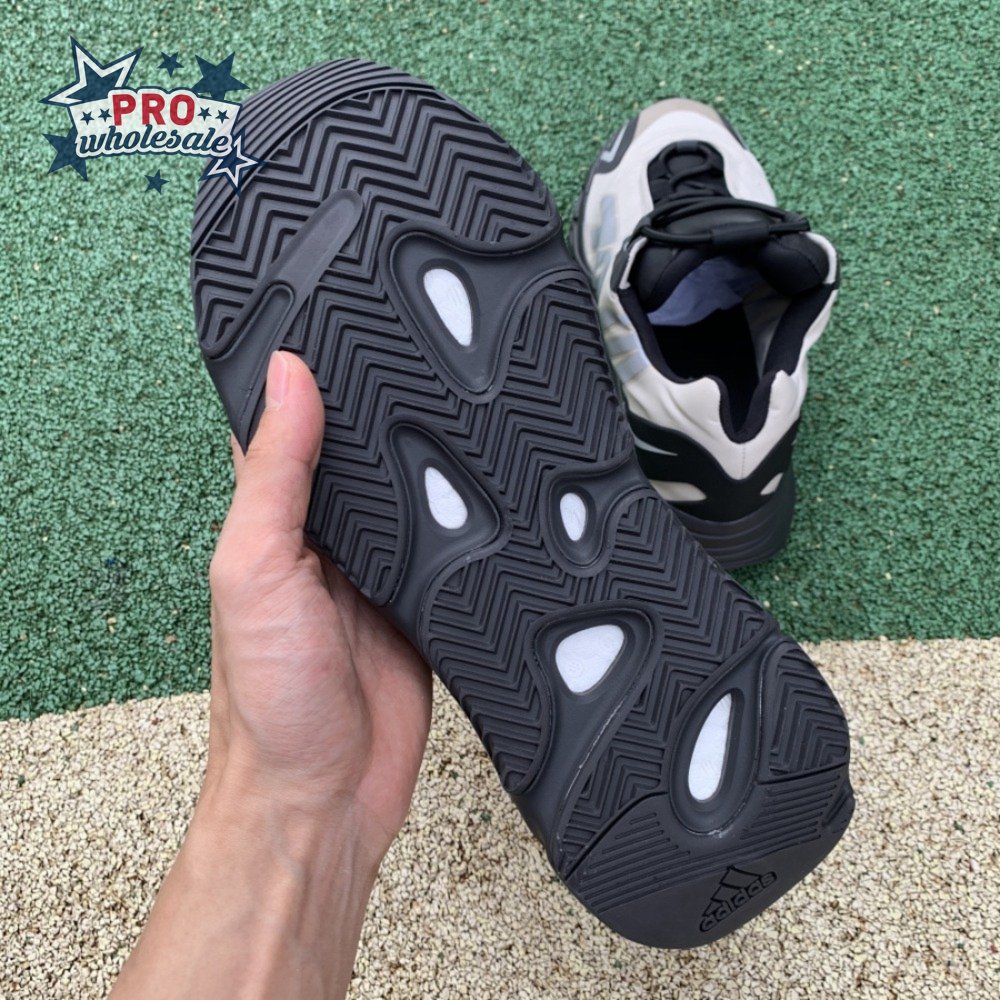The adidas Yeezy Boost 700 MNVN "Bone" makes use of a high-contrast color scheme, highlighted by a cream polyester upper with black no-sew overlays at the toe and heel. No-tie bungee laces provide easy on and off, while reflective 700 branding on the sneaker"s quarter panel offers added visibility in low-light conditions. The seamless build rests on a sculpted black PU midsole, which houses drop-in Boost cushioning for a smooth ride.