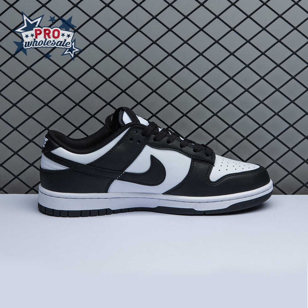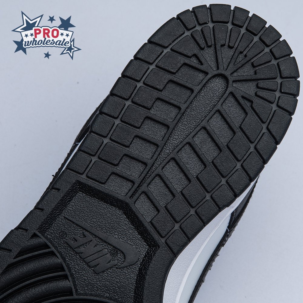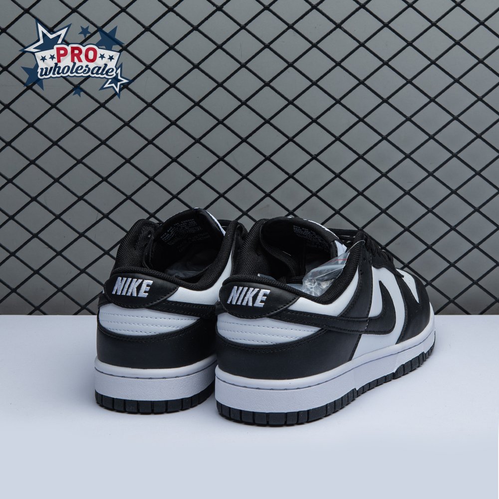 The Nike Dunk Low "Black White" treats the retro model to an essential two-tone color scheme that accentuates the sneaker"s clean lines, developed by designer Peter Moore and responsible for the shoe"s easy transition from the hardwood to the street. The leather upper combines a white base with contrasting black overlays that wrap around the toe and heel. On both the woven tongue tag and heel tab, Nike branding in white stands out in relief against a black backdrop.