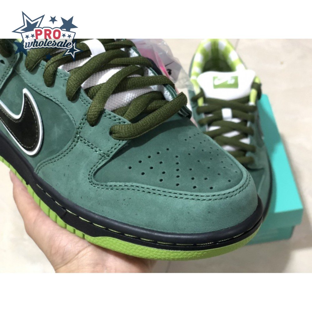 Nike teamed up with Boston-based Concepts to release an exclusive colorway that riffs off of the brand"s crustacean theme. The Concepts x Dunk Low SB 'Green Lobster' features a green colorway with a durabuck and suede upper in Green Stone, with a subtle speckle graphic. The low top also boasts a white padded tongue for comfort, patterns on the inner lining, and a Zoom Air insert in the sockliner for cushioning.