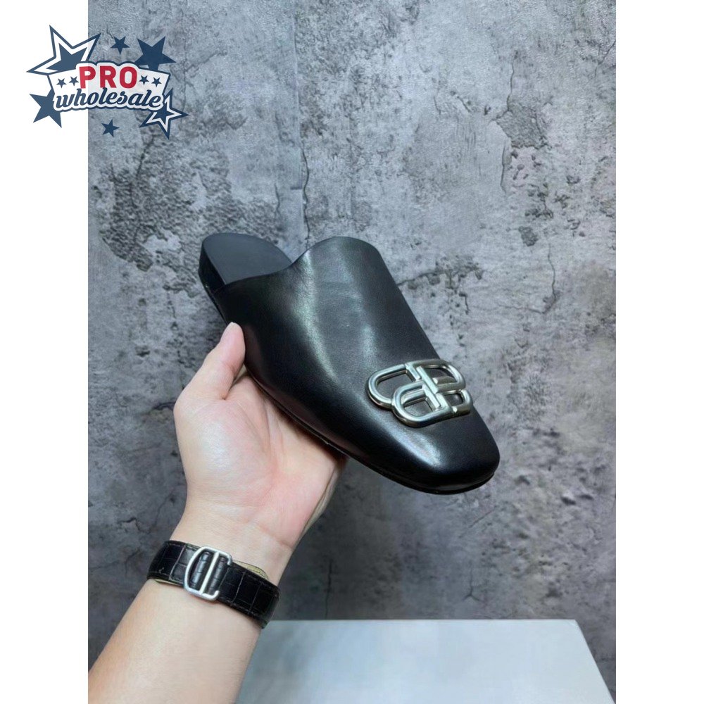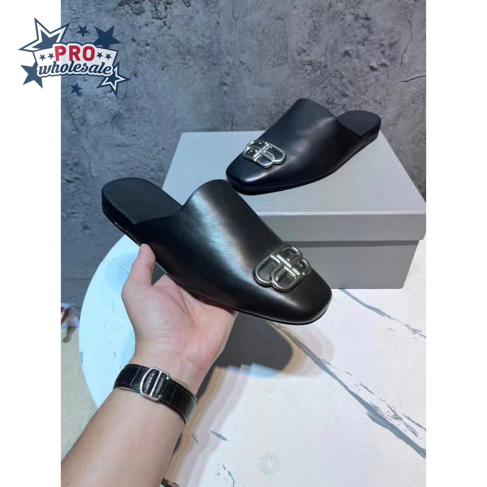 Balenciaga Cosy BB-Logo Mules in Smooth Calfskin