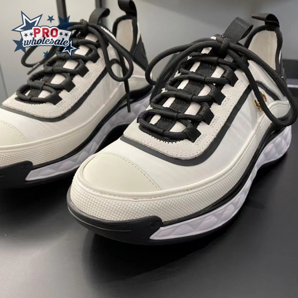 Chanel Suede Trainer White Black With Gold Logo