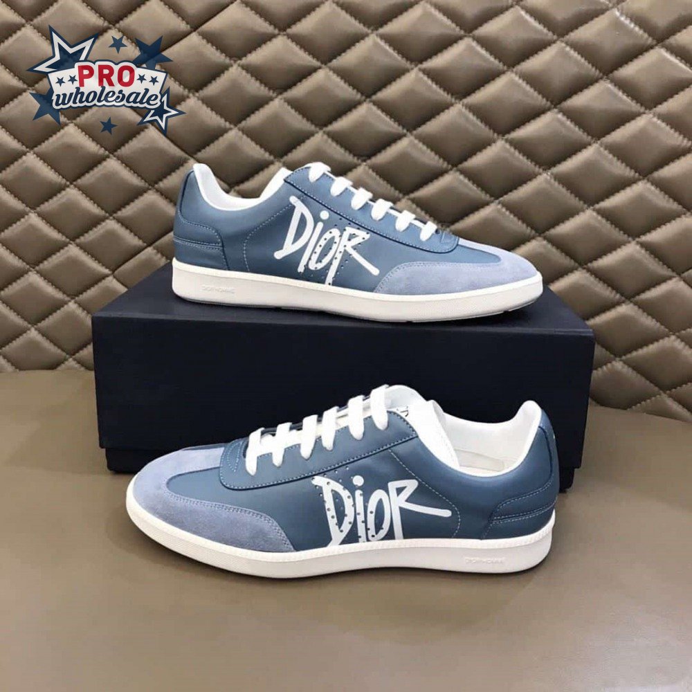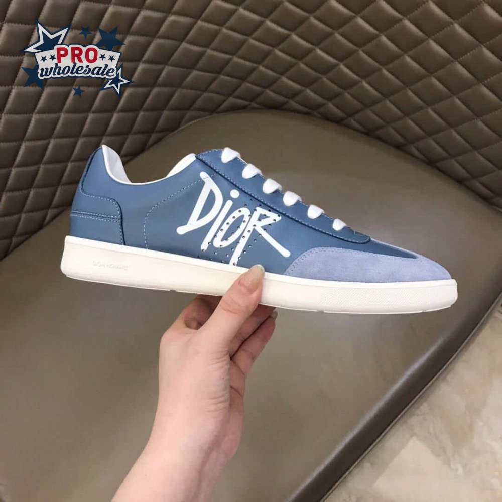 DIOR B01 SNEAKER BLUE SMOOTH CALFSKIN AND SUEDE WITH DIOR AND SHAWN SIGNATURE - CD57