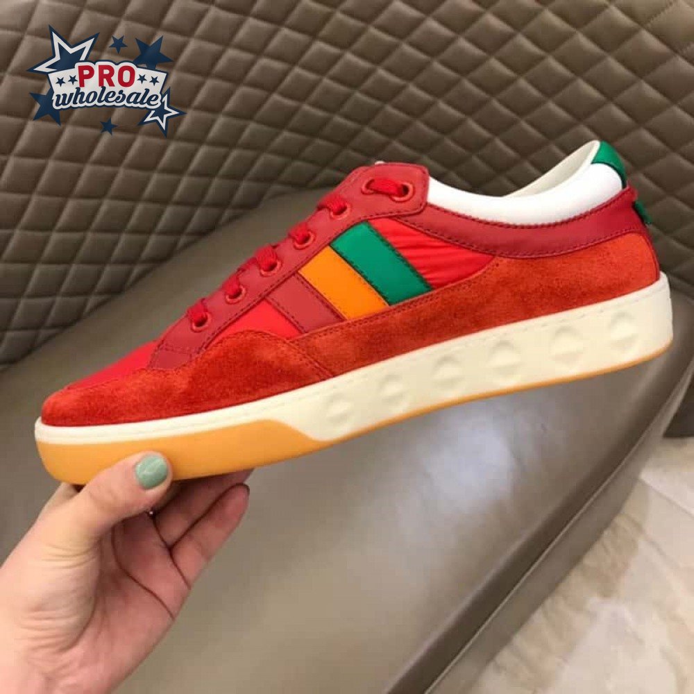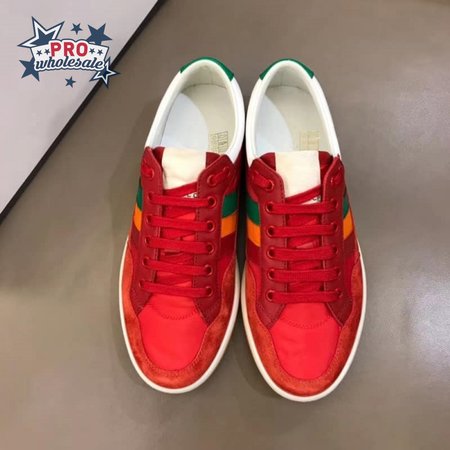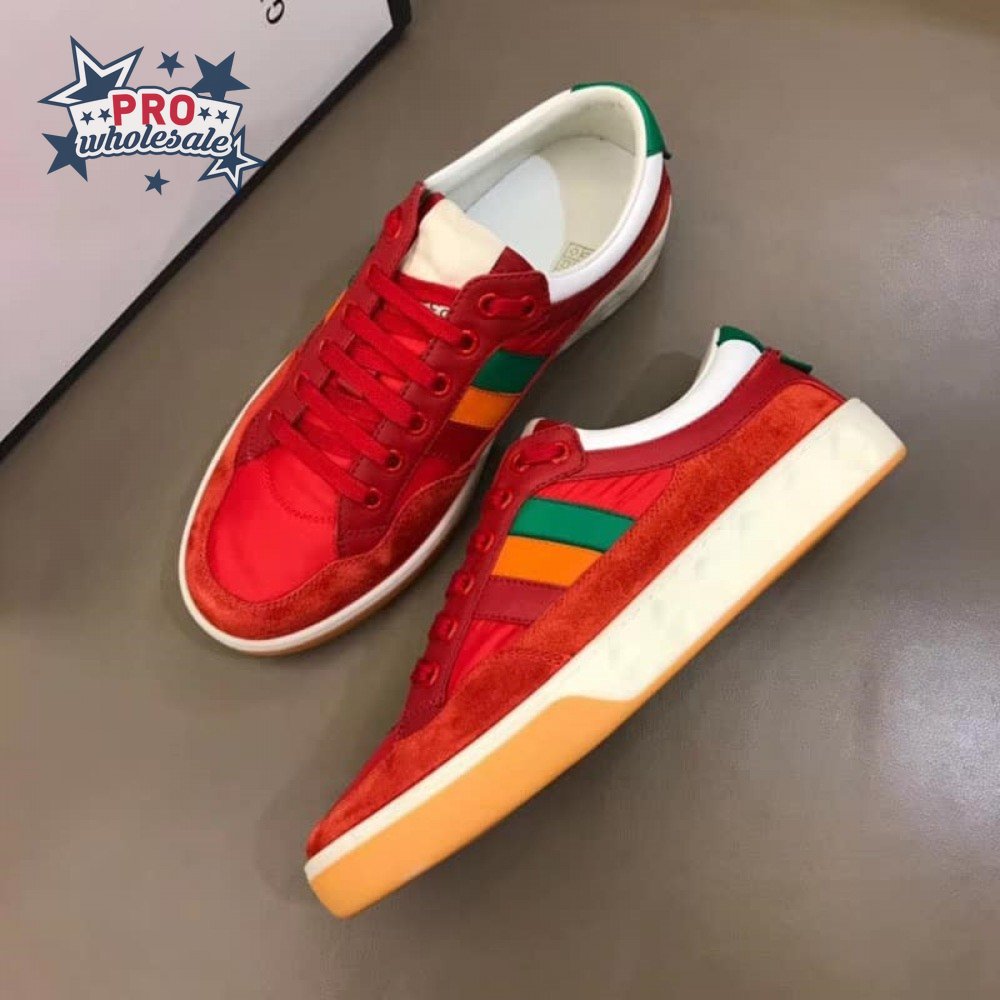 GUCCI MEN'S RED LEATHER AND NYLON SNEAKERS - GC62