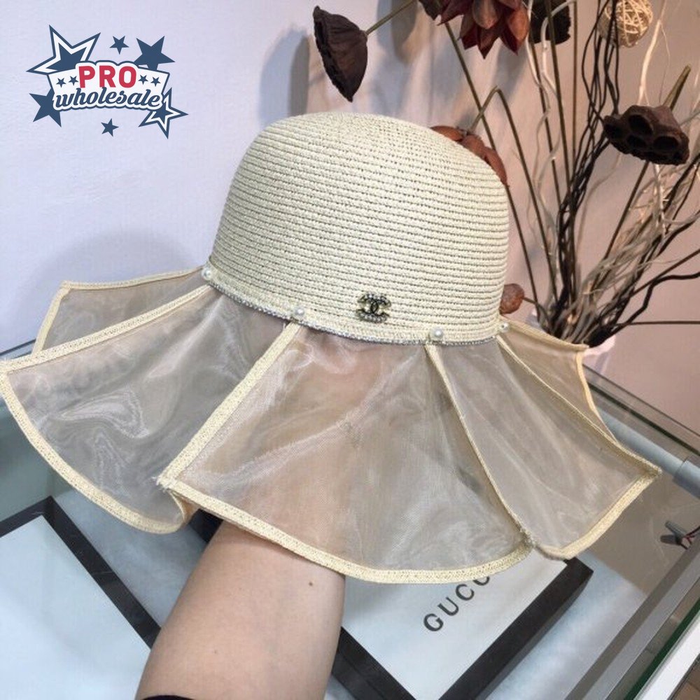 Wholesale CC Top 2020 Pleated lotus leaf stitching straw hat