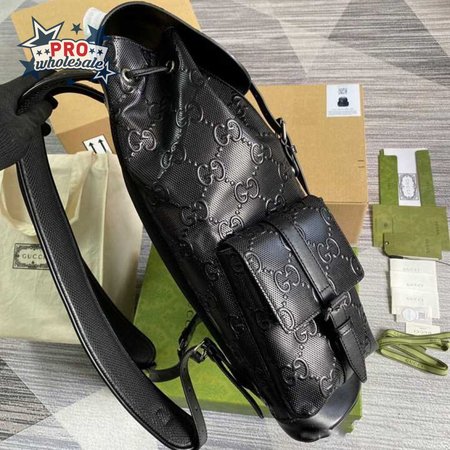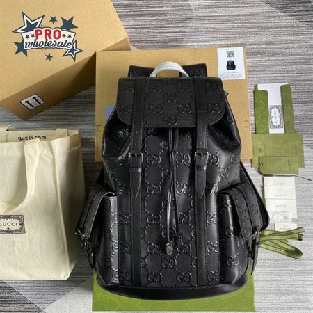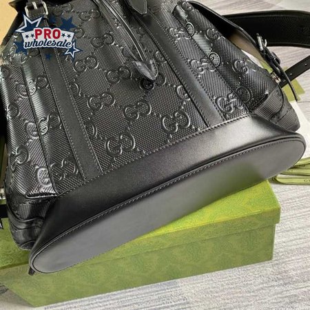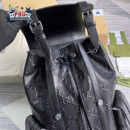 Gg Embossed Backpack In Black Leather GBP014
