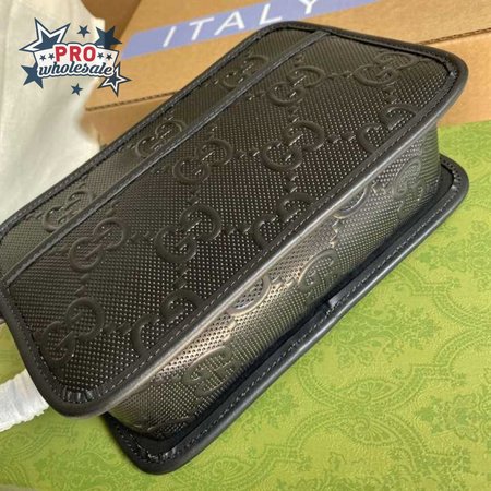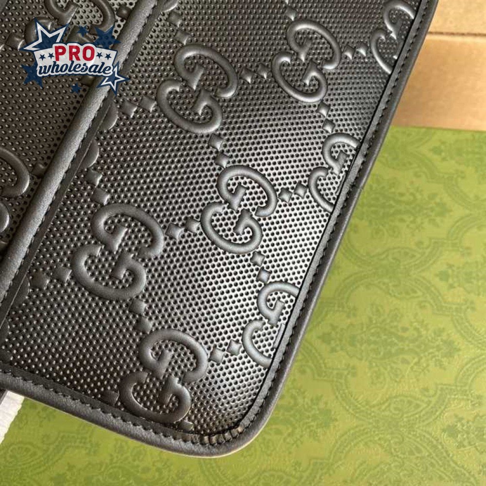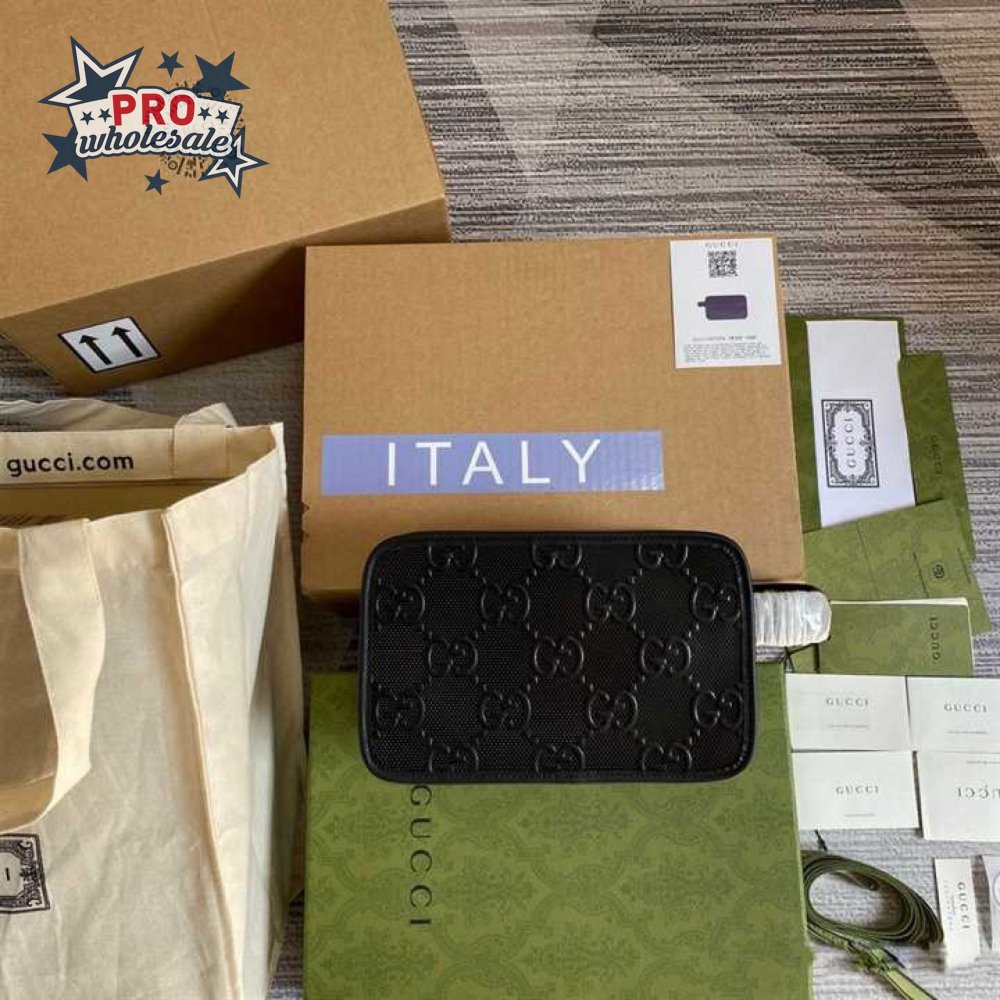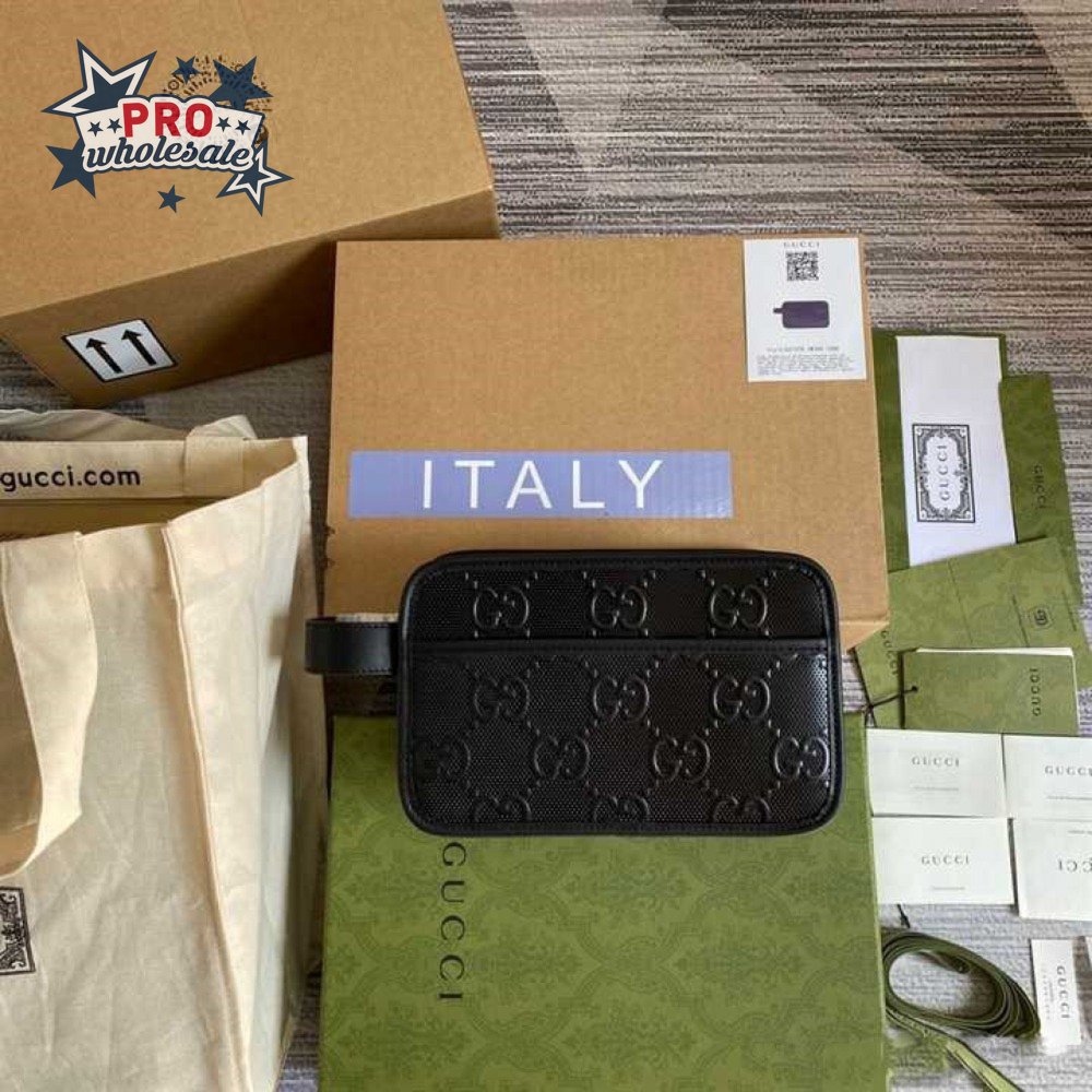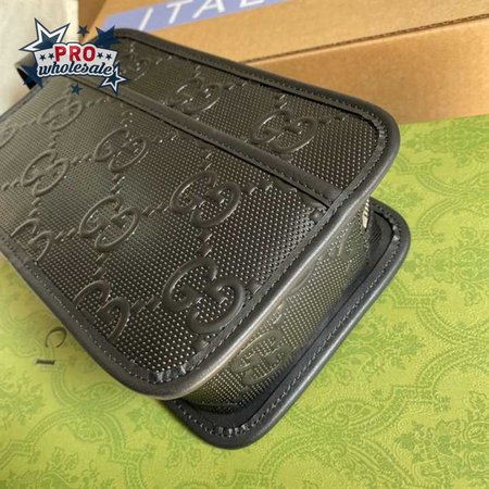 Gg Embossed Cosmetic Case Black Gg Embossed Leather Cotton Linen Lining GBB020