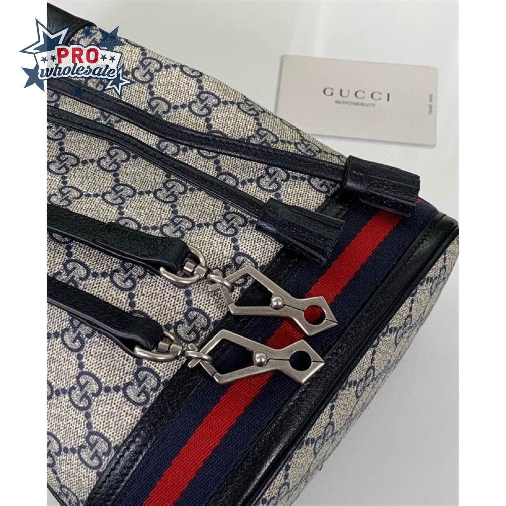 Gucci Messenger Bag Beige/Ebony Gg Supreme Canvas Brown Leather Trim GMB008