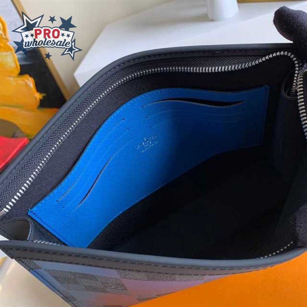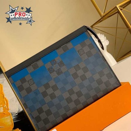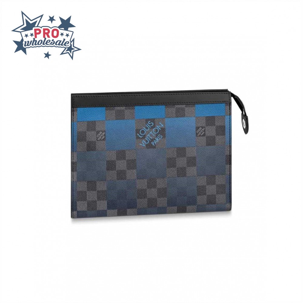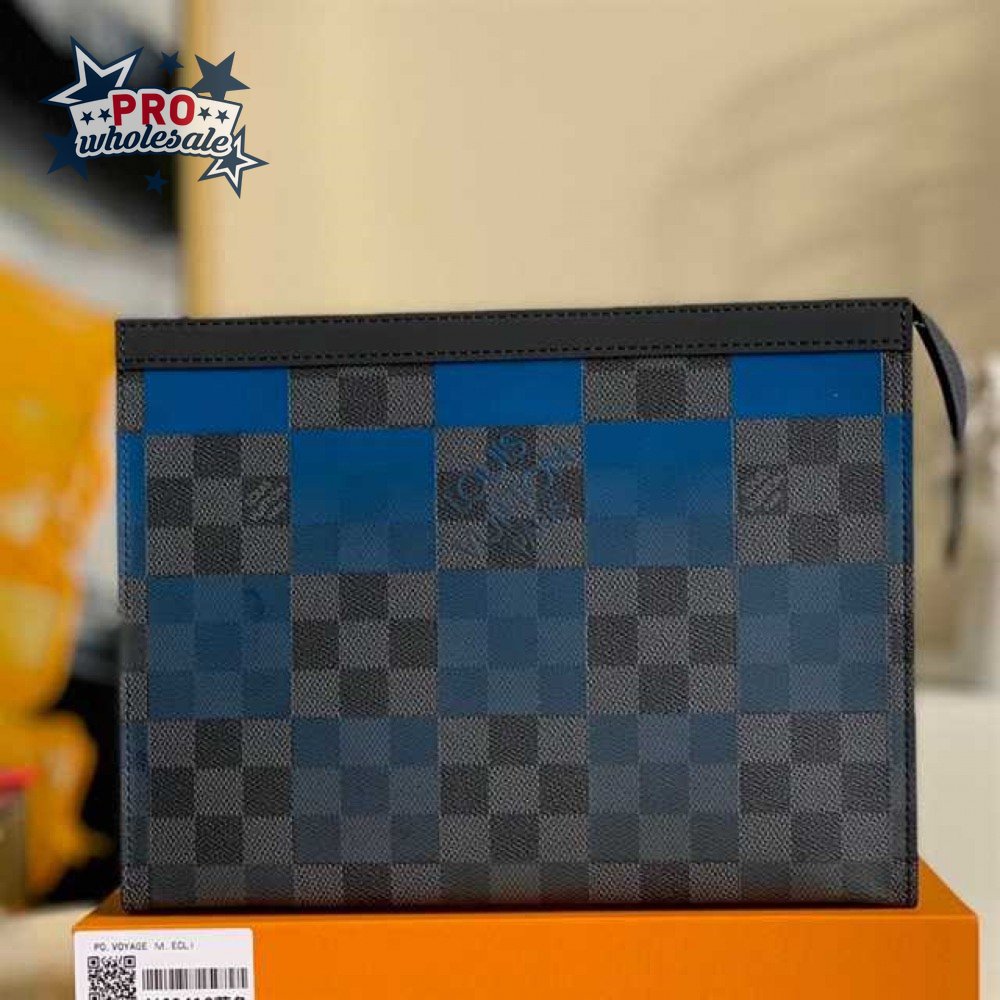 pochette voyage mm damier graphite canvas in blue - pb04