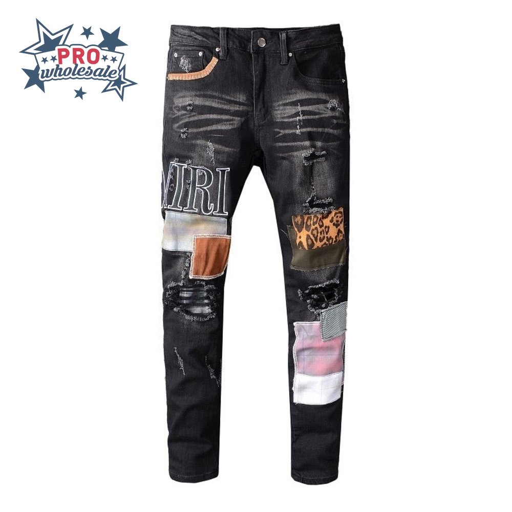 Amiri Patch Rip Jeans Black / Purple / Yellow