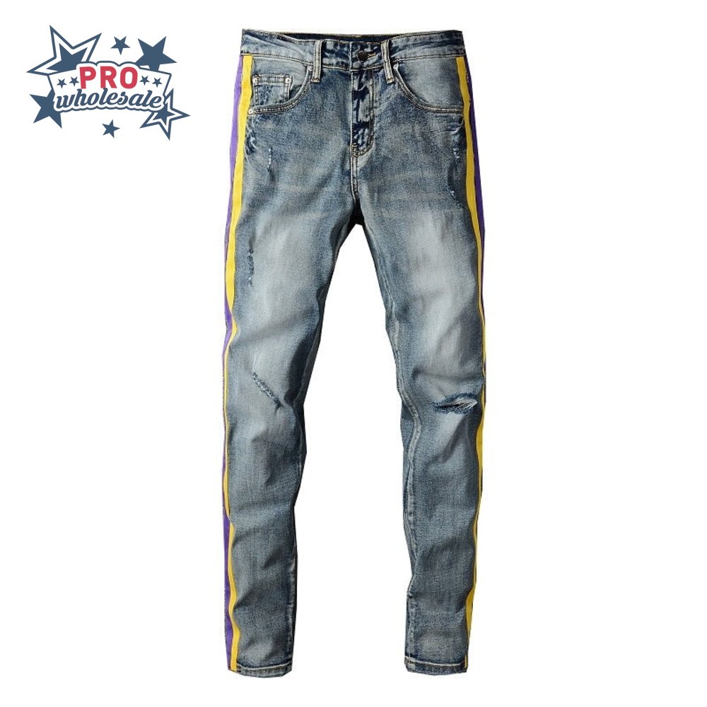 Amiri Rip Jeans Blue / Yellow / Purple