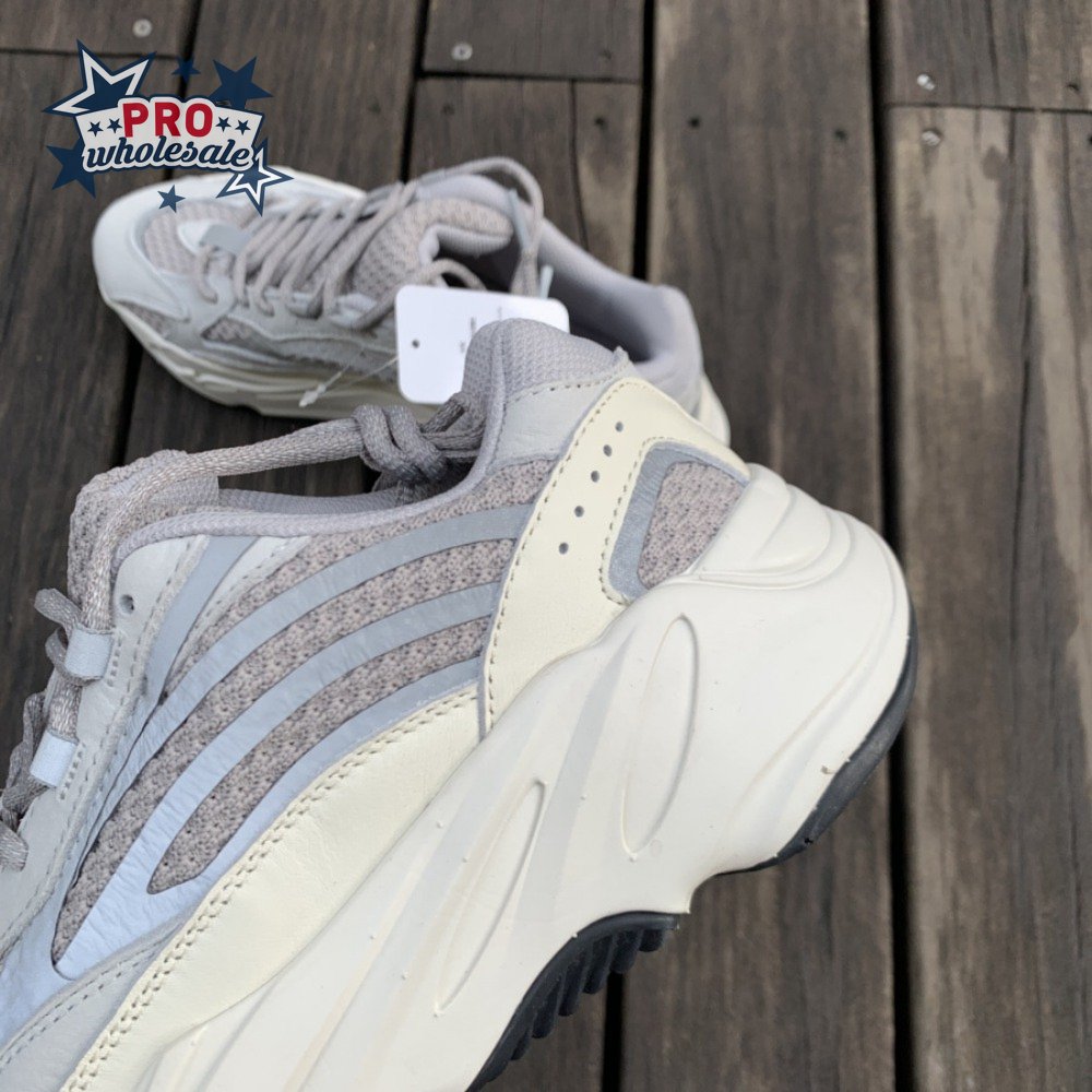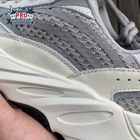 The Yeezy Boost 700 V2 "Static" is an update to the original Wave Runner. The upper features a slightly reworked design, while the midsole stays the same. This new edition showcases an understated colorway made up of soft, neutral shades. The layered composition of the upper, featuring a mesh base with welded reflective overlays and leather paneling, is finished in varying shades of grey and white. The silhouette"s signature bulky midsole, finished in matching white, is supported underfoot by a black rubber outsole.