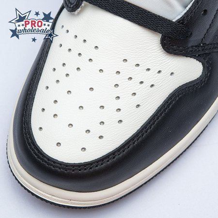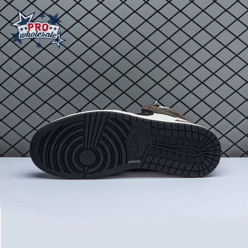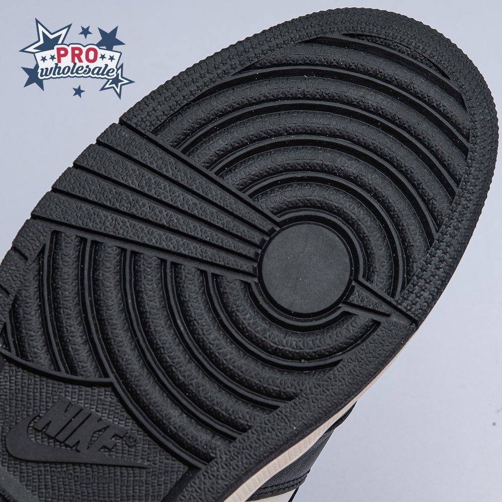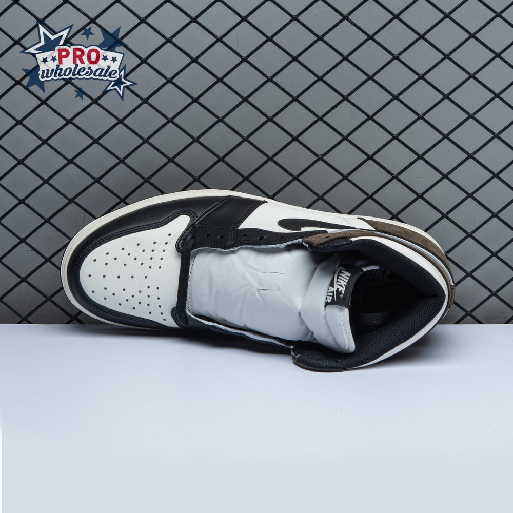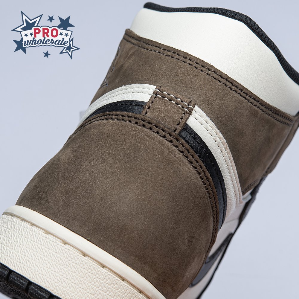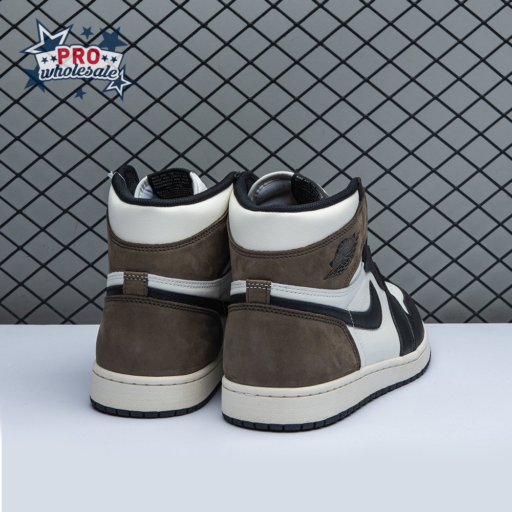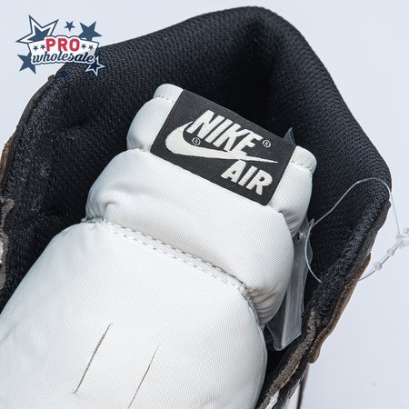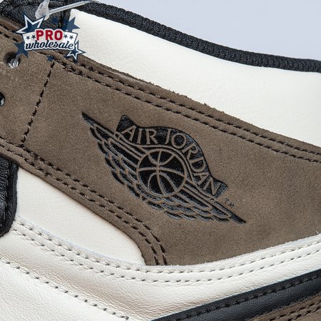 The Air Jordan 1 Retro High OG "Dark Mocha" features a distinctive palette that calls to mind Travis Scott"s highly coveted Air Jordan 1 collaboration from 2019. The upper features an off-white leather base with contrasting black leather overlays on the eyestay and toe. Brown nubuck is utilized on the heel overlay and collar flap, accented with a classic Wings logo on the lateral side. A leather tag with Nike Air branding adorns the nylon tongue.