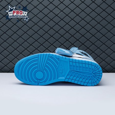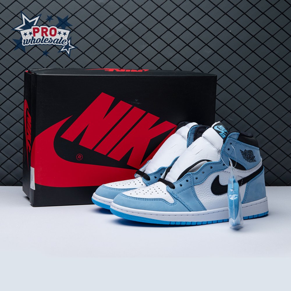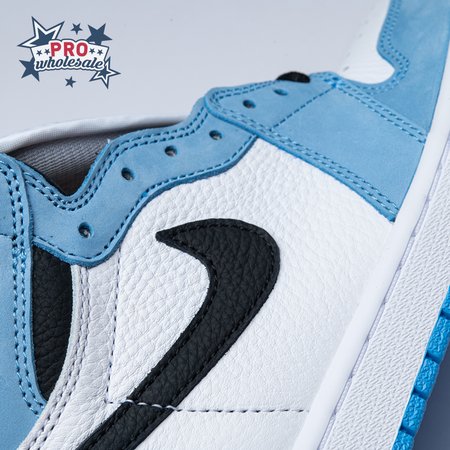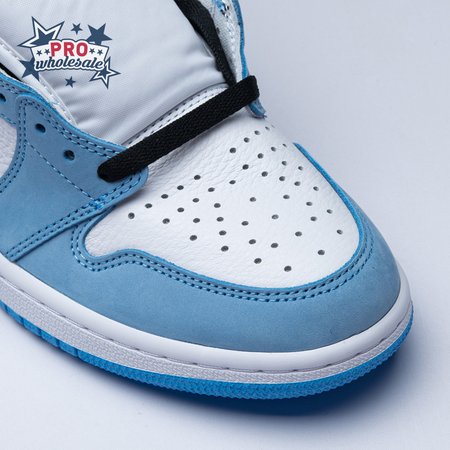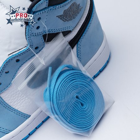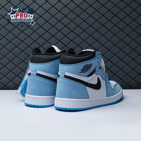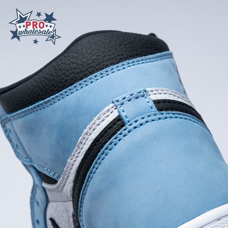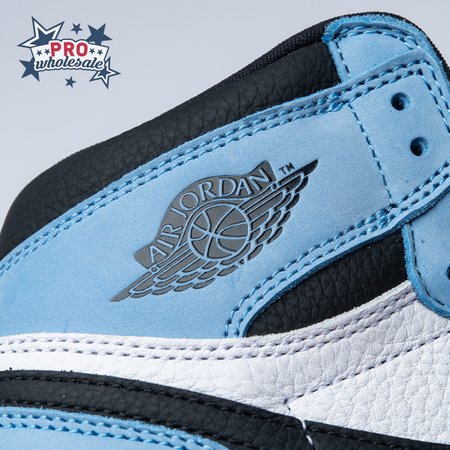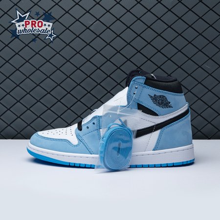The Air Jordan 1 Retro High OG "University Blue" makes use of a familiar palette that gives the nod to Michael Jordan"s UNC alma mater. The all-leather upper features a white base with powder blue overlays and a black signature Swoosh. Matching black accents make their way to the collar, tongue tag and printed Wings logo on the lateral collar flap. A brighter shade of blue is applied to the standard AJ1 outsole, featuring multi-directional traction and a pivot point under the forefoot.