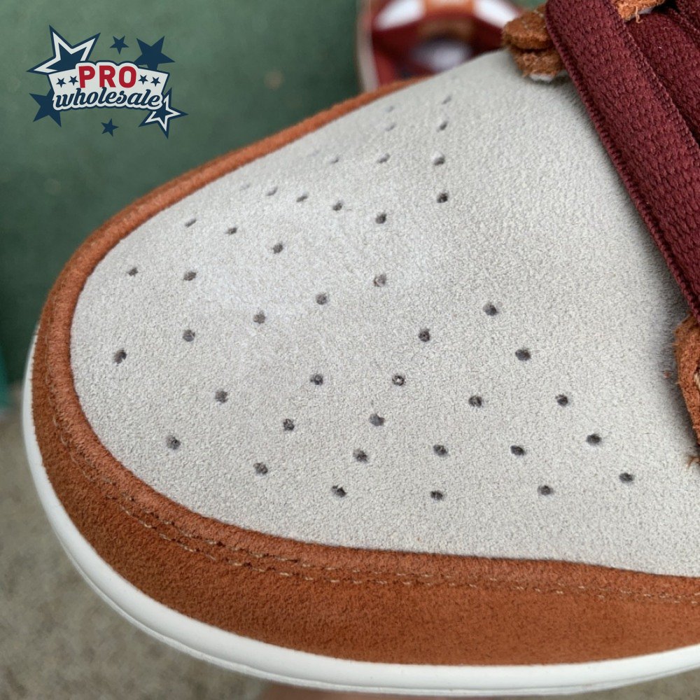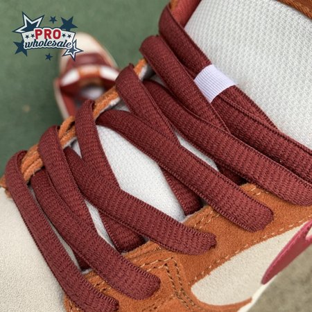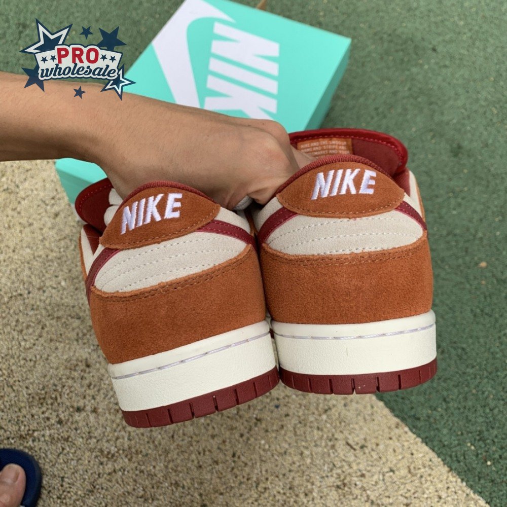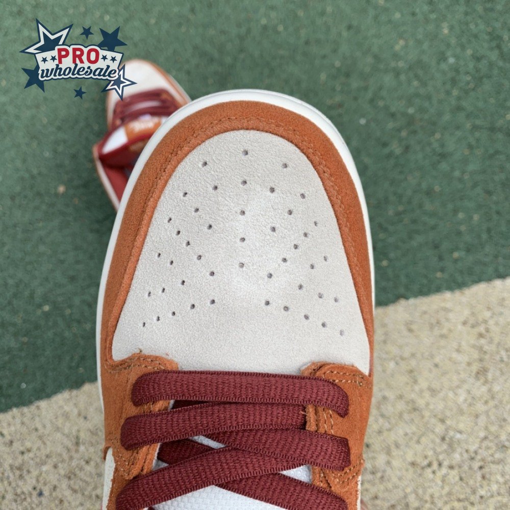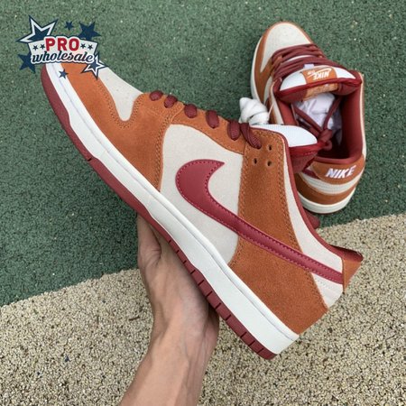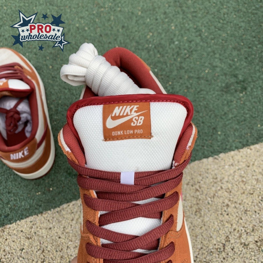 In July 2019, the popular low-cut silhouette from Nike Skateboarding was released in a fresh colorway. The Nike Dunk Low Pro SB 'Dark Russet" features a Summit White suede upper with Dark Russet and Cedar on the suede overlays as well as on the smooth leather Swoosh, laces and insole. A padded collar and Zoom Air unit in the sockliner provide comfort. Beneath, the midsole sits atop a rubber outsole with a circular tread for dynamic grip.