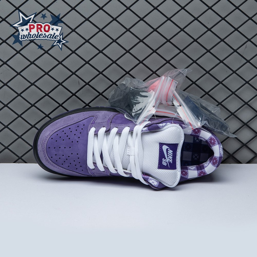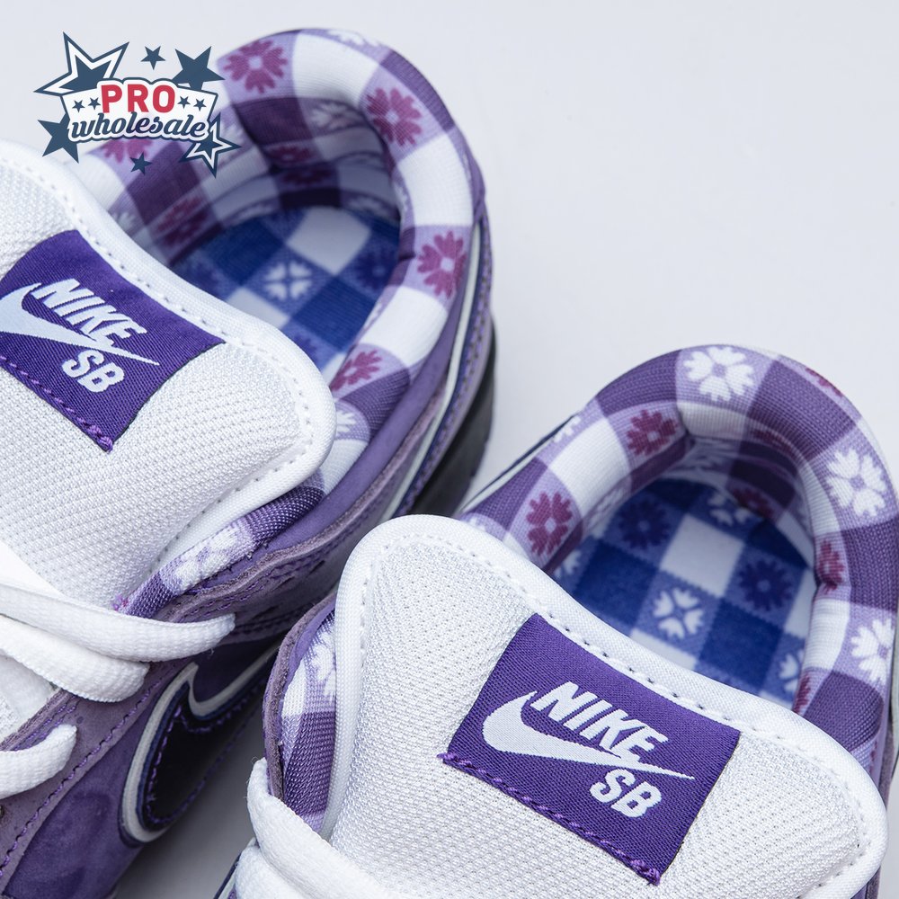 Concepts and Nike SB are back at it again, with a new iteration of the 'Lobster' inspiration. The Dunk Low Premium SB 'Purple Lobster' is similar to the three previous executions, inspired by odd color specimens found in nature due to genetic abnormalities that make their exoskeleton appear in different shades, such as yellow, blue and purple. Special details include a red and white plaid pattern on the lining, and an elastic band wrapped around the forefoot similar to how lobster claws are secured.