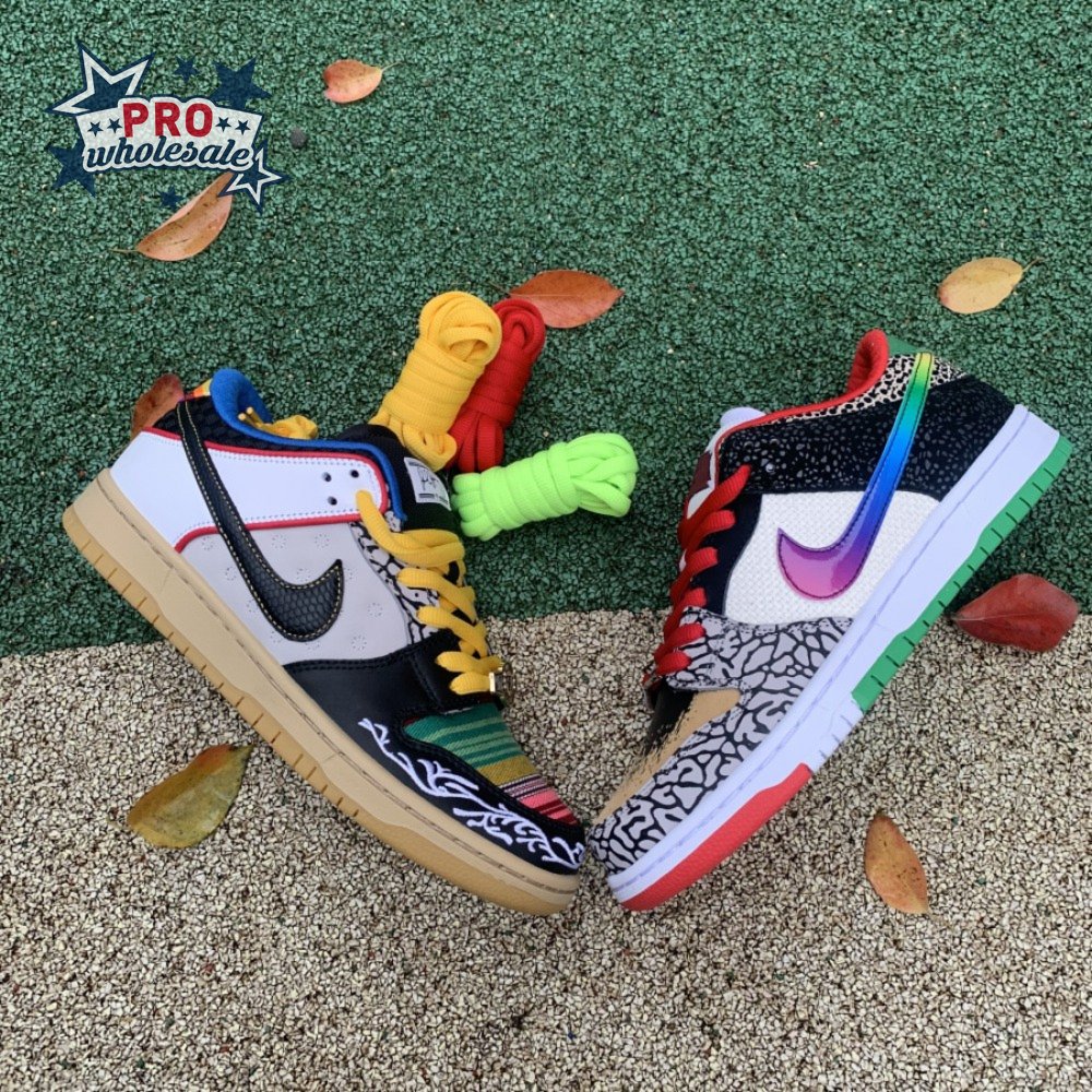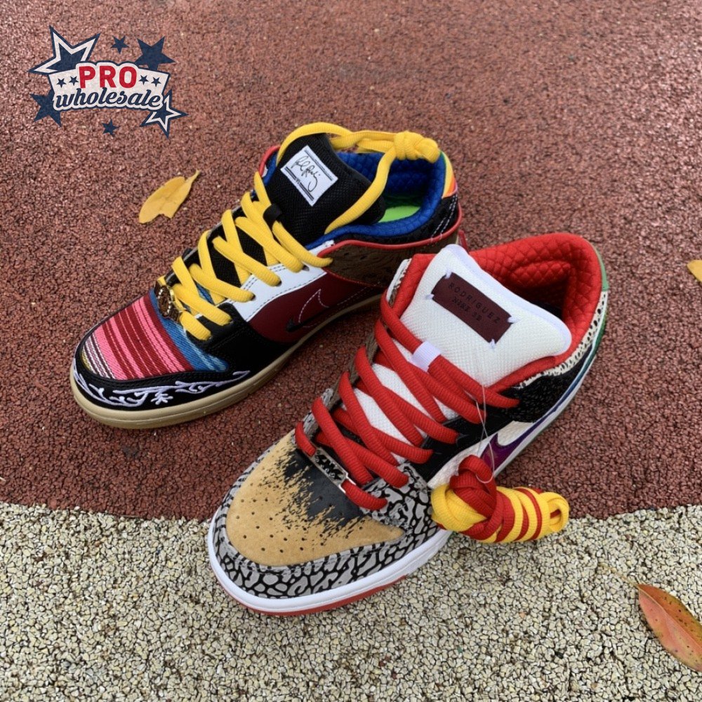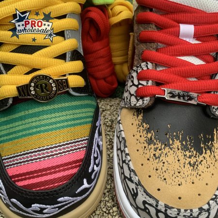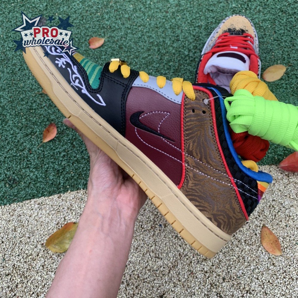 The Nike Dunk Low SB "What The Paul" celebrates the Swoosh"s longstanding partnership with Paul Rodriguez Jr., the first skateboarder to land his own signature Nike shoe. Each of the mismatched shoes is a greatest-hits medley featuring distinctive colors, textures and materials culled from P-Rod"s signature line. Multiple details are drawn from various colorways of the P-Rod 1, including the J-Rod"s elephant print overlays and toe boxes that reference the "Mexican Blanket" and "Stash" editions. Additional highlights include the P-Rod 2"s quilted lining and a metallic lace jewel taken from the athlete"s Mexico-themed SB Dunk High from 2020.