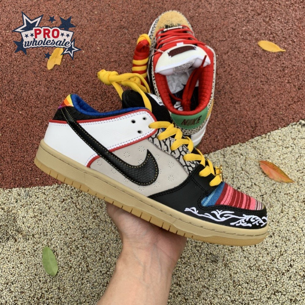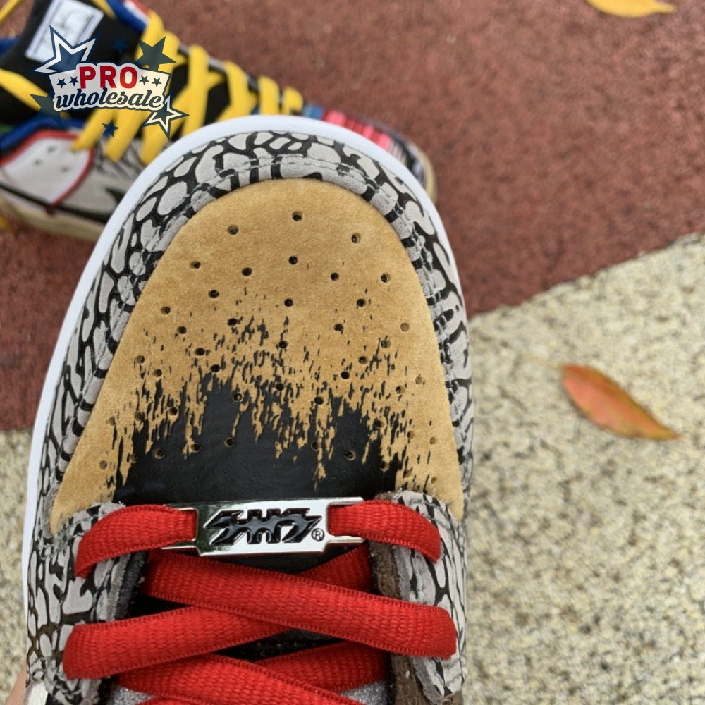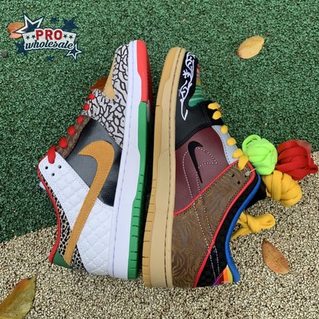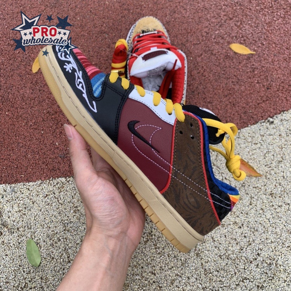 The Nike Dunk Low SB "What The Paul" celebrates the Swoosh"s longstanding partnership with Paul Rodriguez Jr., the first skateboarder to land his own signature Nike shoe. Each of the mismatched shoes is a greatest-hits medley featuring distinctive colors, textures and materials culled from P-Rod"s signature line. Multiple details are drawn from various colorways of the P-Rod 1, including the J-Rod"s elephant print overlays and toe boxes that reference the "Mexican Blanket" and "Stash" editions. Additional highlights include the P-Rod 2"s quilted lining and a metallic lace jewel taken from the athlete"s Mexico-themed SB Dunk High from 2020.