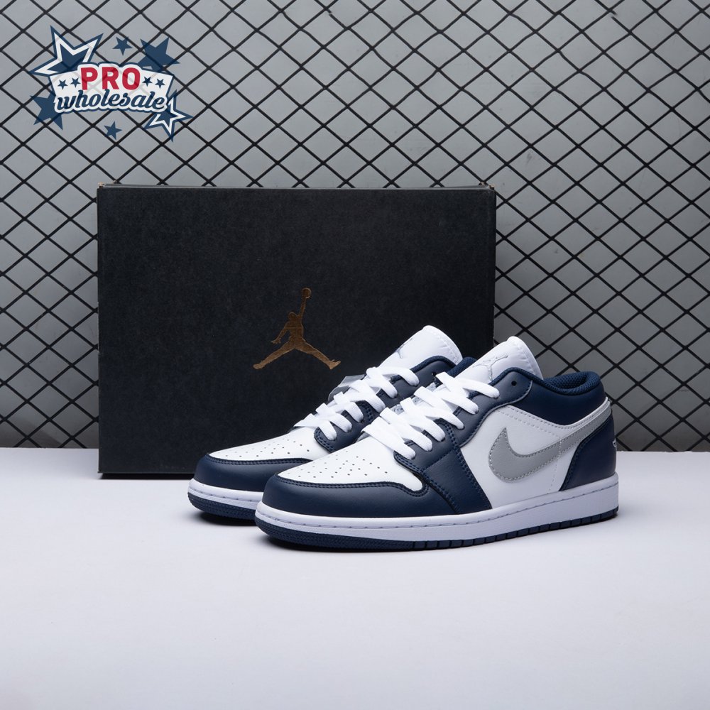 Jordan 1 Low Wolf Grey Midnight Navy 553558-141 Unisex