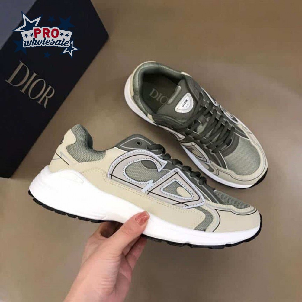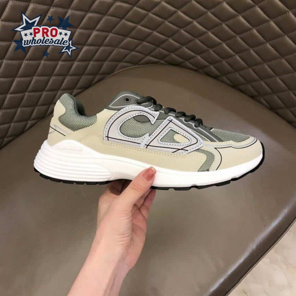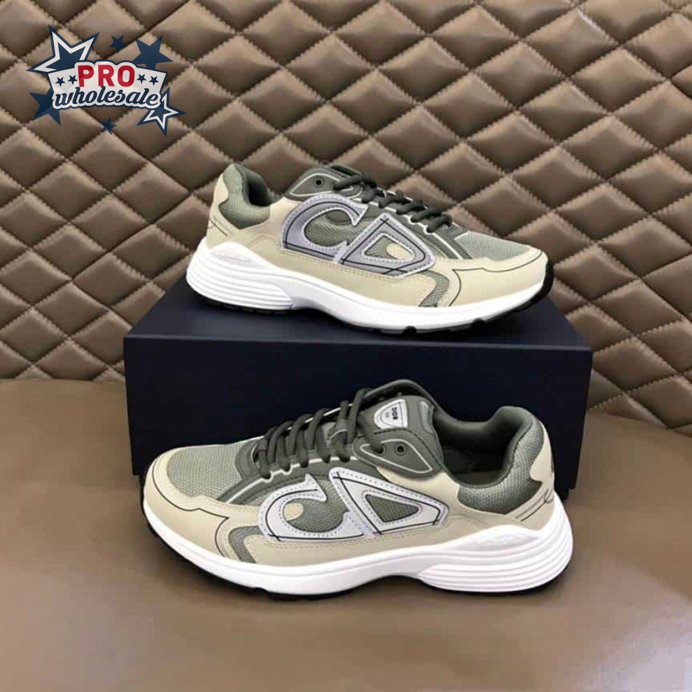DIOR B30 SNEAKERS OLIVE MESH AND CREAM TECHNICAL FABRIC - CD86